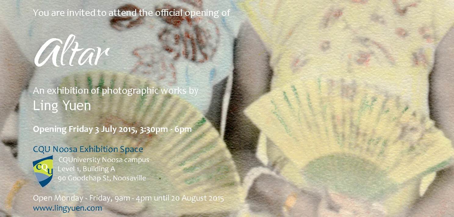 I'll be showing new work in 'Altar', a solo exhibition opening Friday 3 July 2015 at the Central Queensland University Noosa Exhibition Space. Very exciting...